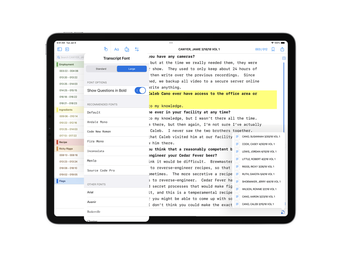 Customize your transcript reading experience with the ability to select fonts, sizes, and bolded questions, ensuring optimal comfort and readability.