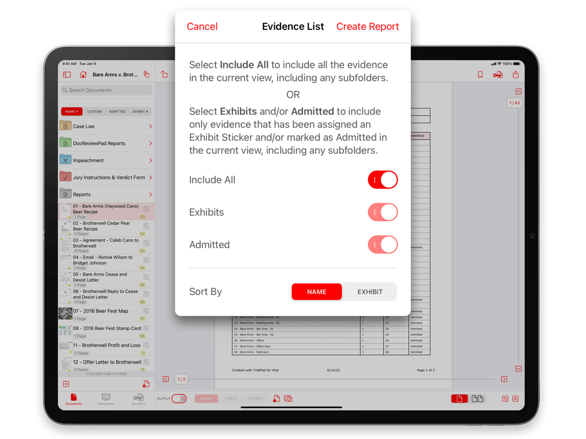 Craft visually stunning reports encompassing all your evidence, presenter notes, or an automatic log of what was presented, ensuring a comprehensive and polished record of your trial proceedings.