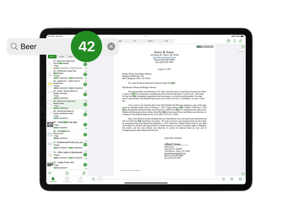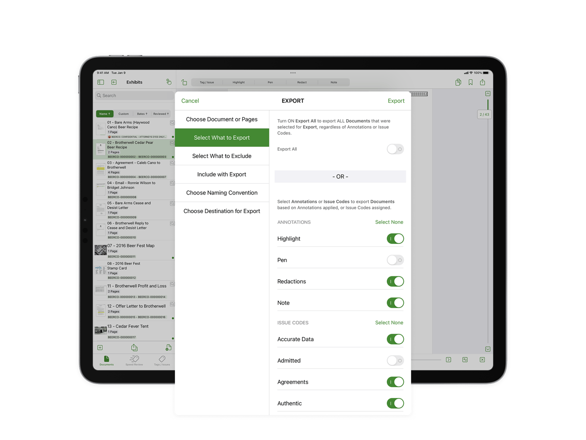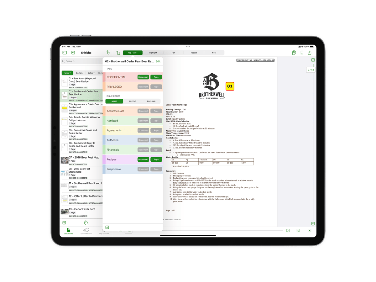 Powerful review tools designed for your iPad so you can review, organize, and issue-code wherever your case takes you.