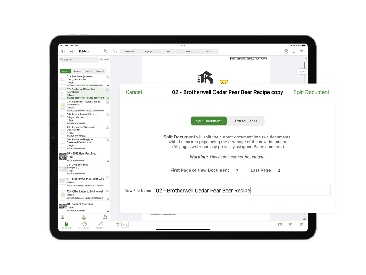 Divide existing documents or extract specific pages to create new documents, giving you unparalleled control over your document review and organization.